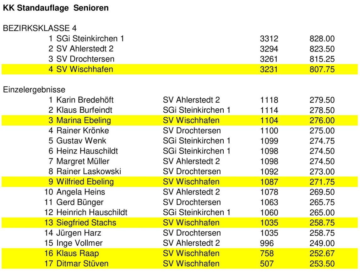 Ergebnisse Senioren KK Standauflage 2018
