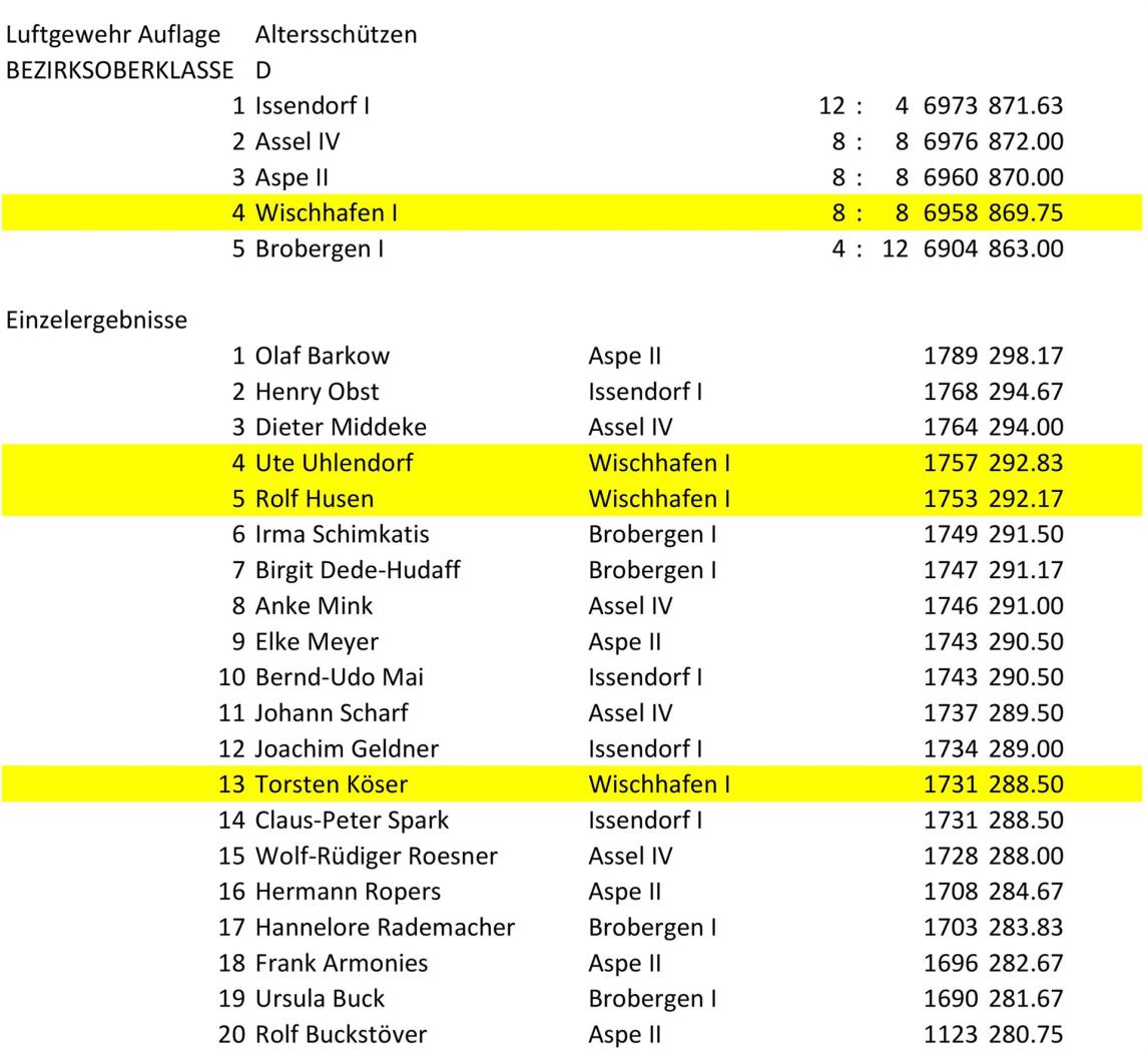 Ergebnisse Alterschützen-Auflage Winterrunde 2017/18