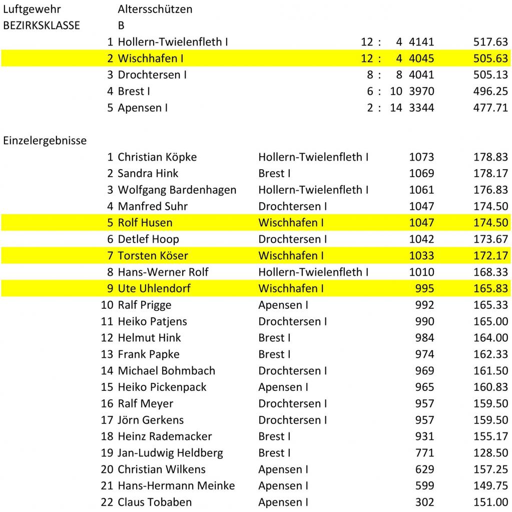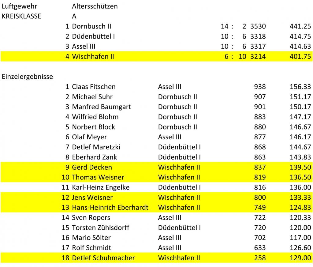 Ergebnisse Alterschützen-Freihand Winterrunde 2018/19